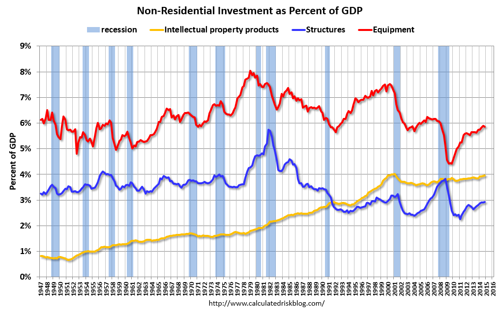 It's hard to say, because now we have a category called "Intellectual Property," which was only added to our GDP last year and already is adding 0.5% to our numbers.  Since that number was -0.2% last quarter, we can figure that, without IP picking up the slack from fixed investment – we'd be in very sad shape.