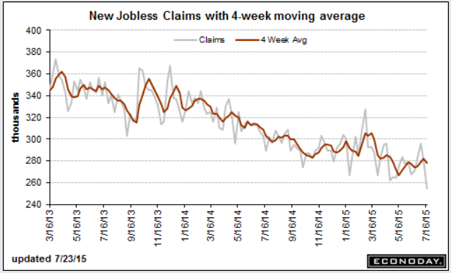 Auto retooling, and related temporary layoffs, is always a major wildcard for jobless claims in July and are likely at play in a startling 26,000 fall in initial claims in the July 18 week to a 42-year low of 255,000. A look at the 4-week average, which helps smooth out volatility, is less startling, down 4,000 to a 278,500 level that is little changed from the month-ago comparison.