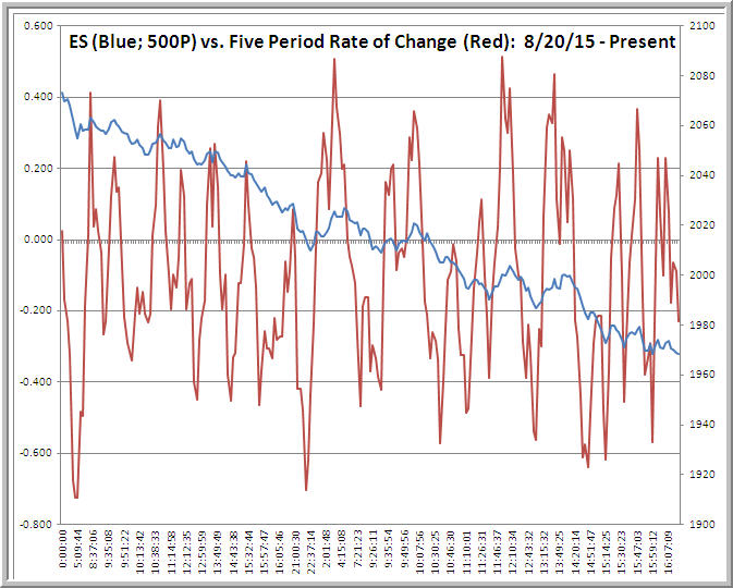 The previous post illustrated why trading is challenging, as markets change their volume, volatility, and trendiness–sometimes quite radically. On Friday, for example, SPY traded with a true range of over 3%, three times the average daily true range of the previous 20 trading sessions. Volume expanded to over 345 million shares, also three times the average volume of the prior 20 sessions. Friday's pure volatility (volatility per unit of volume) rose to twice the level we had averaged since April–meaning that, not only were we getting more volume coming into the market, but the volume was creating twice the previous movement.