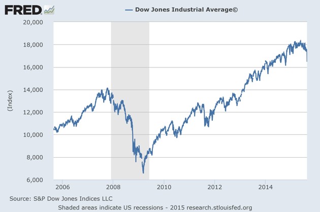 The Dow dropped sharply this morning: The index was down more than 1,000 points at opening bell before recovering later in the morning. The news, following Friday’s 500 point drop, lit up Twitter and news headlines.