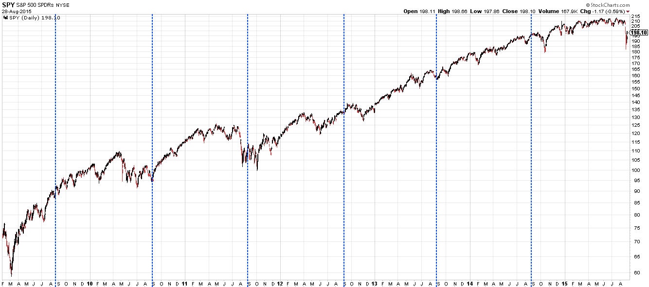 The last two weeks have been remarkable. On August 17, SPY closed less than 1% from its all-time closing high. A week later it had lost 11%. And then three days later it had regained half of those loses, jumping 6%.