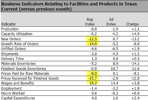 The above table from the Dallas Fed Texas Manufacturing Outlook Survey.