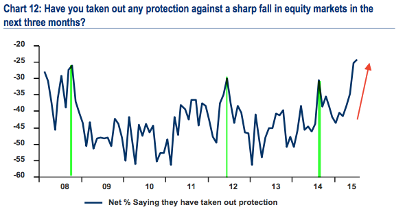 Macro: Less than 20% expect a stronger global economy over the next 12 months, a 3 year low. This compares to a net -20% in mid-2012, at the start of the current rally.