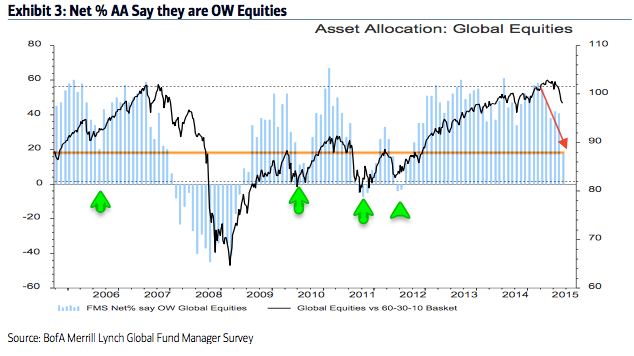 Equity allocations often continue to fall after the low in equities. In the chart above, note this pattern in 2006, 2010 and 2012.