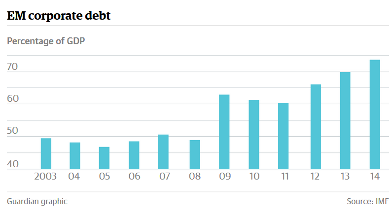 The debts of non-financial firms in emerging market economies quadrupled, from $4tn (£2.6tn) in 2004 to well over $18tn in 2014, according to the IMF’s twice-yearly Global Financial Stability Report.