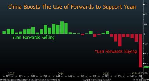 Below, Bloomberg shows China's increasing use of forward swaps to support the RMB or Yuan.