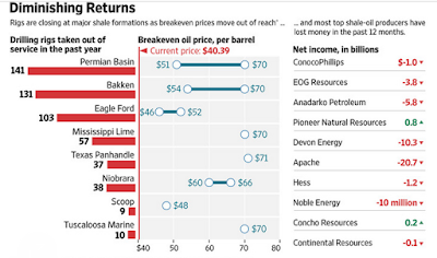 The Wall Street Journal explains Low Crude Prices Catch Up With the U.S. Oil Patch.