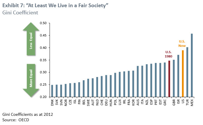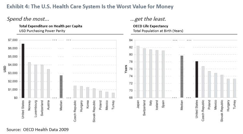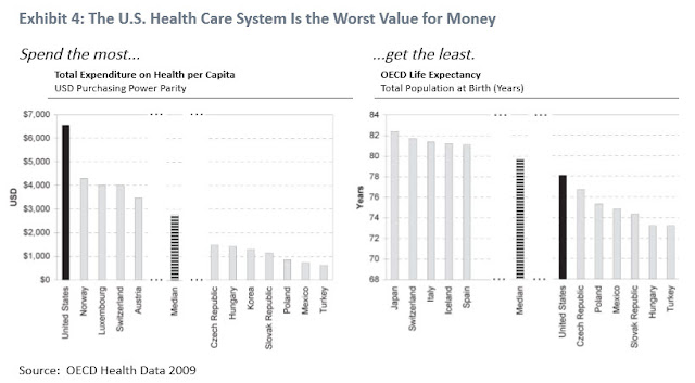 I wish these charts included the percentage of the population incarcerated in prison, the number of children living in poverty, and the number of wars of discretion to 'save the rest of the world.'