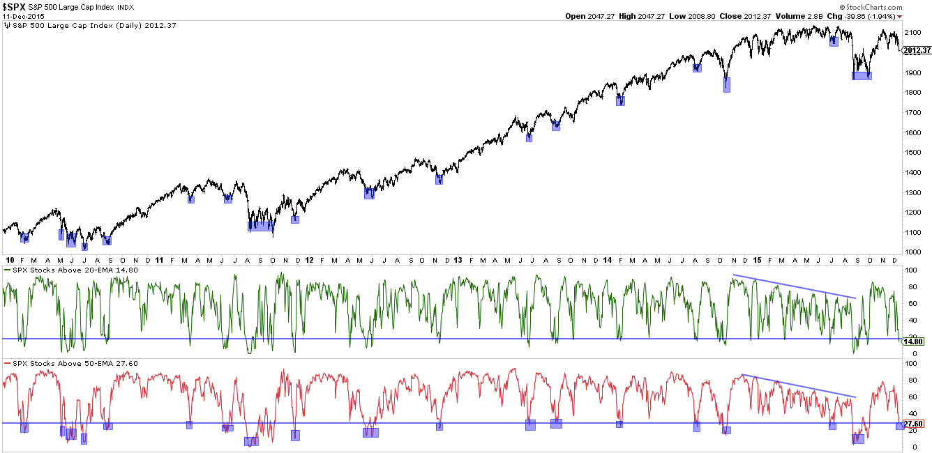 Next are cases in 2011, 2014 and 2015. Again, each was at or near a low in SPY.
