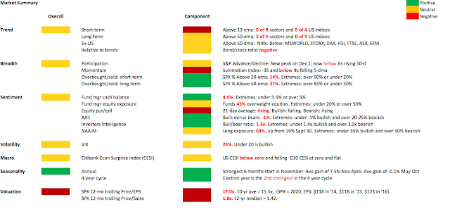 In summary, SPY and NDX are near support and breadth is either washed out or close to being so. The spike in volatility was extreme and mean reversion usually follows. Seasonality, especially with December OpEx up next, is very bullish. All things being equal, risk/reward should be strongly skewed higher.