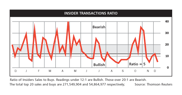 Insiders, who are often but not always right, are as bullish now as they were in mid-November before a 3% rally in SPX (data from Barron's).
