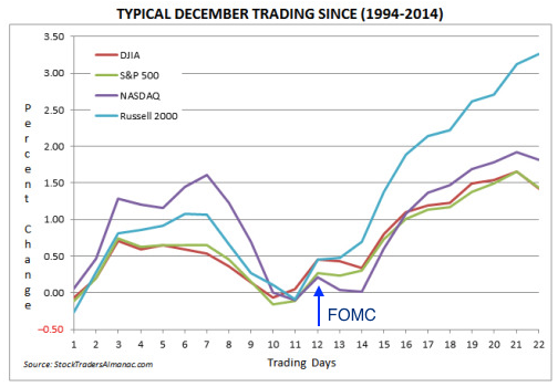 Second, while December is typically very strong, the beginning of the month is not. The positive performance in December typically starts in the second half (meaning the week that's upcoming). Again, so far nothing extraordinarily unusual.