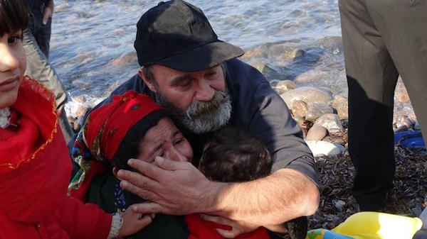 Elena Angelopoulos Kostas comforts on Lesbos 2015