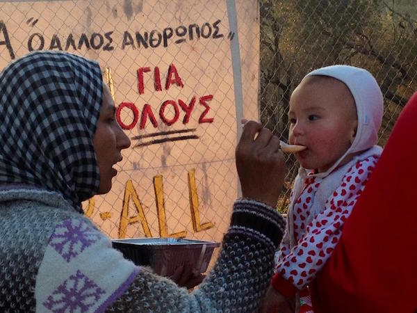 Elena Angelopoulos Refugee mother feeds child at ‘The Other Human’ social kitchen on Lesbos 2015