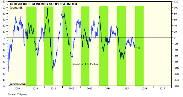 There has been a tendency for macro data to underperform expectations in the first half of the year and beat expectations in the second half. For the first time since 2009, macro expectations are below zero to start the year.