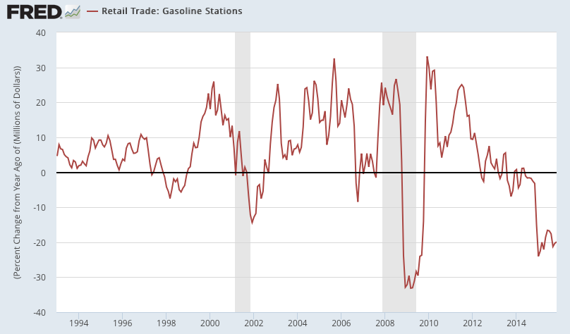 Retail sales this year have been strongly affected by the large fall in the price of gasoline. Retail sales at gasoline stations fell by 20% yoy. Retail sales excluding gas stations grew 3.6% (nominal) in November.