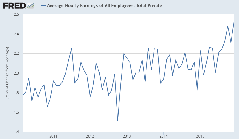 Average hourly earnings growth in December was 2.5% yoy, the highest in more than 6 years. Sustained acceleration in wages would be a big positive for consumption.