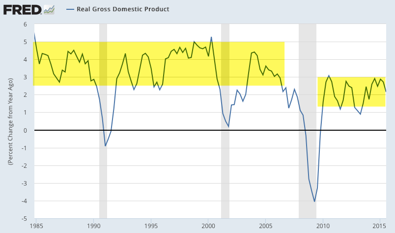 Our key message over the past 2 years has been that (a) growth is positive but modest, in the range of ~3-4% (nominal), and; (b) current growth is lower than in prior periods of economic expansion and a return to 1980s or 1990s style growth does not appear likely.