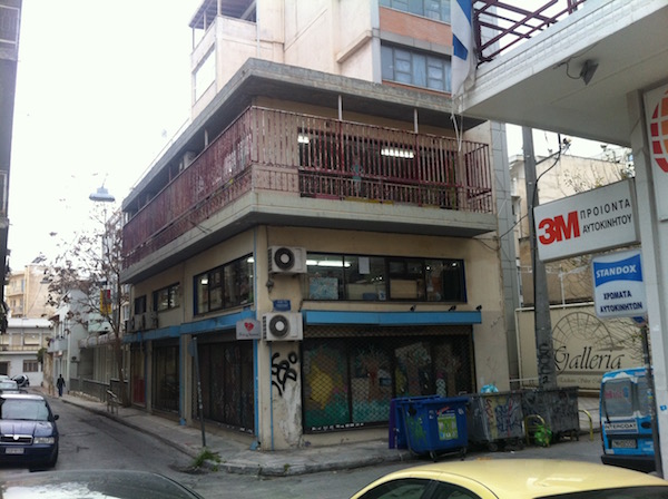 Here’s the pretty much nondescript building the Center is housed in at the corner of Aristonos 6-8 & Pierias, Kolonos: