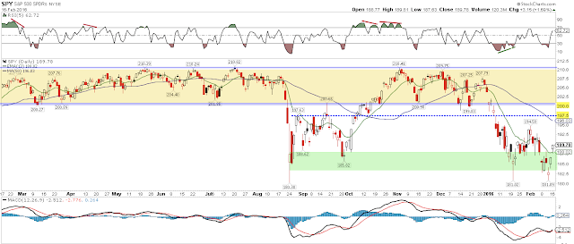 A small, 8% bear market rally that started from Thursday's close of $183 on SPY would make it to $197.5. A rally to the 50-dma would take SPY to about $195-196, assuming it lasted only a week or so. $196.5 is also equivalent to a 50% retrace from the November high.
