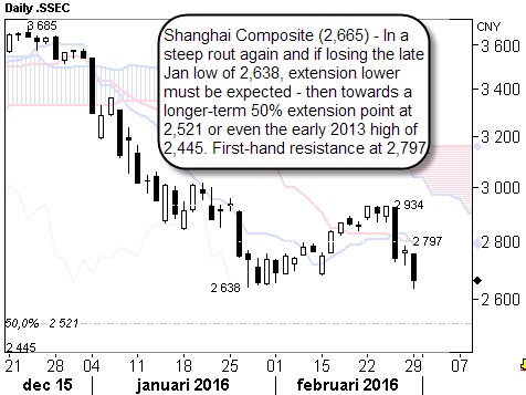 Sadly, after a 3-day meeting of the World's top Financial Ministers in Shanghai, markets are opening weak after only vague commitments to spur growth came out of the meeting. Chinese stocks, which desperately need a boost, fell below the critical 2,700 line on the Shanghai this morning but were pumped back to 2,687 into the close – still in a precarious position.