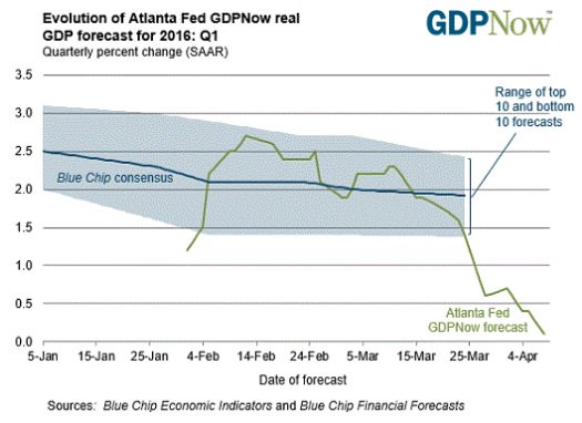 This afternoon, the Fed will attempt to get their act together prior to a special meeting with both President Obama and Vice-President Biden to discuss ways in which the Government might be able to stop the horrific slide in the GDP forecast that's been going on for the past 30 days and is ACCELERATING to the downside at a rapid pace – as noted by the Atlanta Fed's updated GDP Now forecast, which has dropped all the way to 0.1% – almost as low as the interest rates meant to stimulate it.
