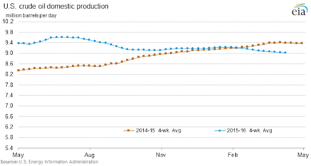 Pay Attention to the declines in U.S. Production over the next 4 Months. Along with the drop in Rig Counts which are at record lows, and the lag effect between the drop in Rig Counts and U.S. Production Declines.