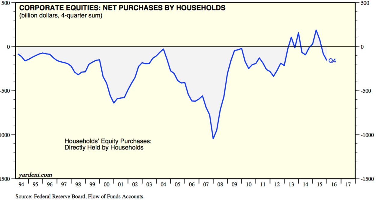 Fourth, investor pessimism reached an extreme in February and there has not been much of an improvement since. A post on this from the week of the February low is here and one from last week is here (chart from BAML).
