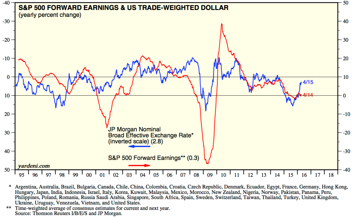 Fifth, corporate earnings were dragged lower in the past 18 months by a combination of falling energy prices and a surging dollar. Both of those seem to have reversed and continued improvement could become a tailwind for earnings in 2016 (chart from Yardeni).