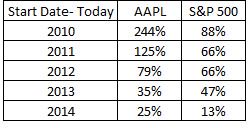 $50.6Bn in revenues and $10.5Bn ($1.90/share) profits does not suck – especially since this is an average quarter so $9/share for the year(ish) is a p/e of 13.3 at $120.  Name a bigger, safer stock than that?