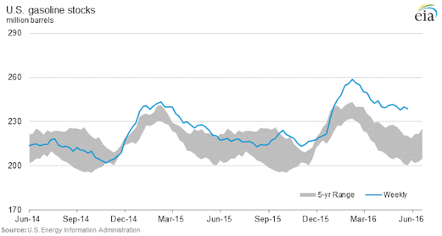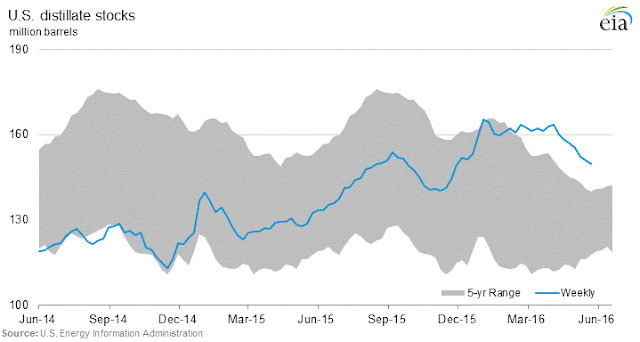 Gasoline demand is good, but Distillate demand not so much on a year over year basis, and per-well costs are down 25% to 30% from 2012 high levels for upstream costs for onshore plays. The Real Question is when do the Sharks start front running the end of the Summer Driving Season?