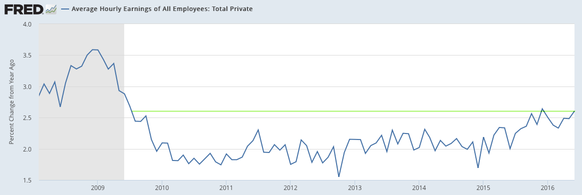 The June non-farm payroll was 287,000 new employees minus 6,000 in revisions. This was the strongest monthly report since October 2015.
