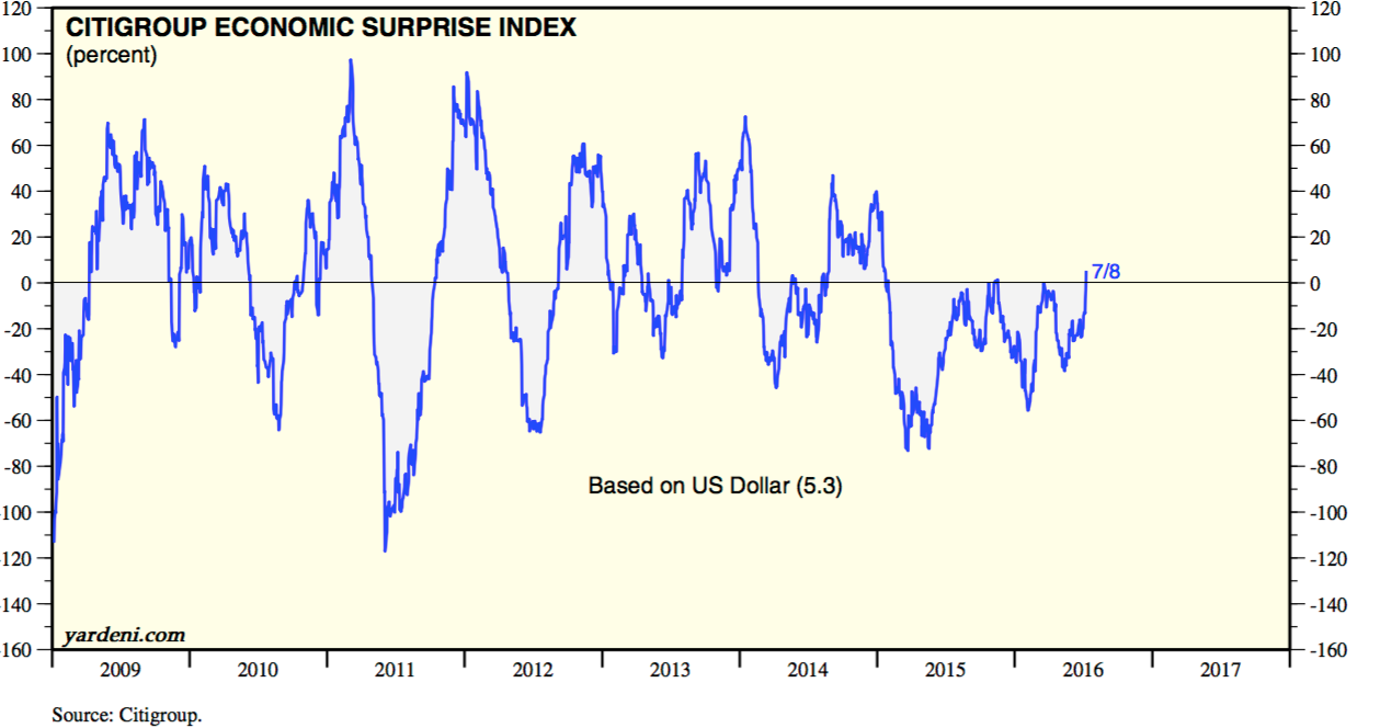 There has been a tendency for macro data to underperform expectations in the first half of the year and beat expectations in the second half. For the first time since 2009, macro expectations have been below zero to start the year. Expectations have just turned positive.