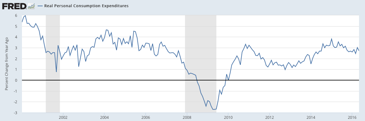 On a monthly basis, the growth in real personal consumption expenditures was 2.7% yoy in May.