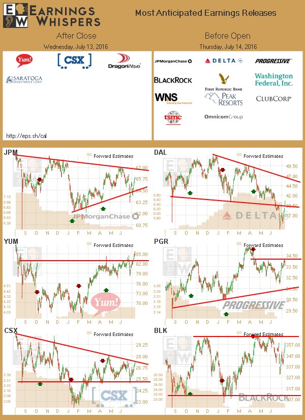 This evening (10pm) we should get the Q2 GDP Report from China and that will be interesting but it's all about earnings next week and so far, so good on that front with big beats from AA, JPM, CBSH and CSX while YUM and BLK were OK.