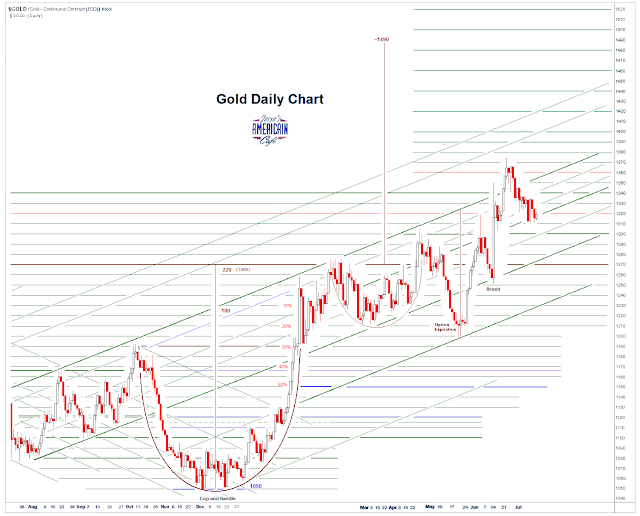 Gold Daily and Silver Weekly Charts – Quiet Option Expiry, FOMC Tomorrow (Jesse's Cafe Americain)