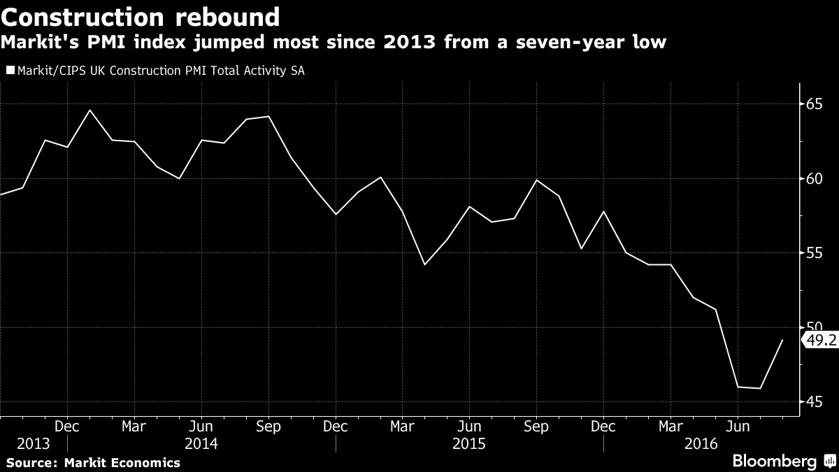 U.K. Construction Index Jumps Most Since 2013 in Brexit Rebound (Bloomberg)