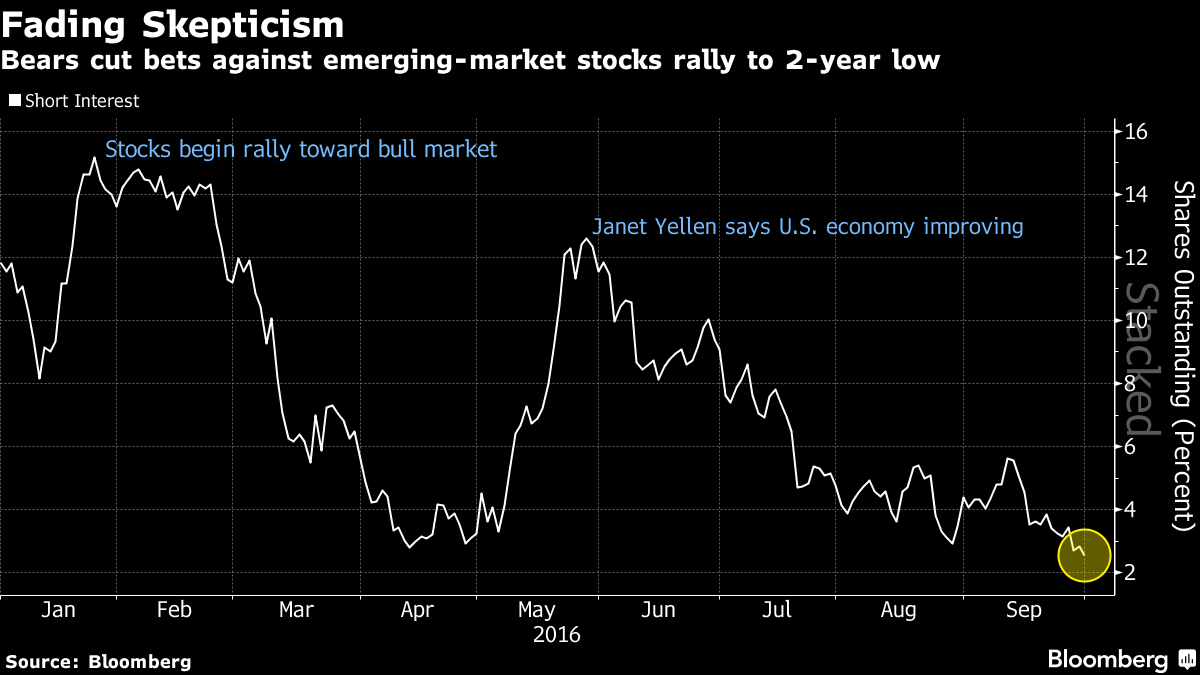 Months of skepticism on the sustainability of a rally in emerging-market stocks is waning, if short sellers are any guide.