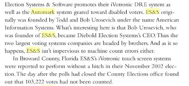 Above an excerpt from The Mezonic Agenda: Hacking the Presidency, a resource for problems with electronic voting systems, citing ESS iVotronic systems used extensively in Wisconsin. ESS is the largest voting machine company in the US.