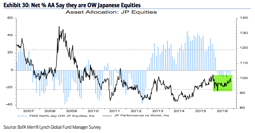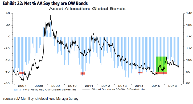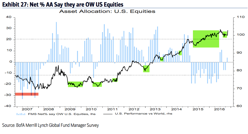 Summary: Throughout 2013, 2014 and early 2015, fund managers were heavily overweight equities and underweight cash and bonds. Those allocations entirely flipped in 2016, with investors persistently shunning equities in exchange for holding cash.