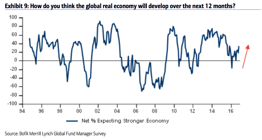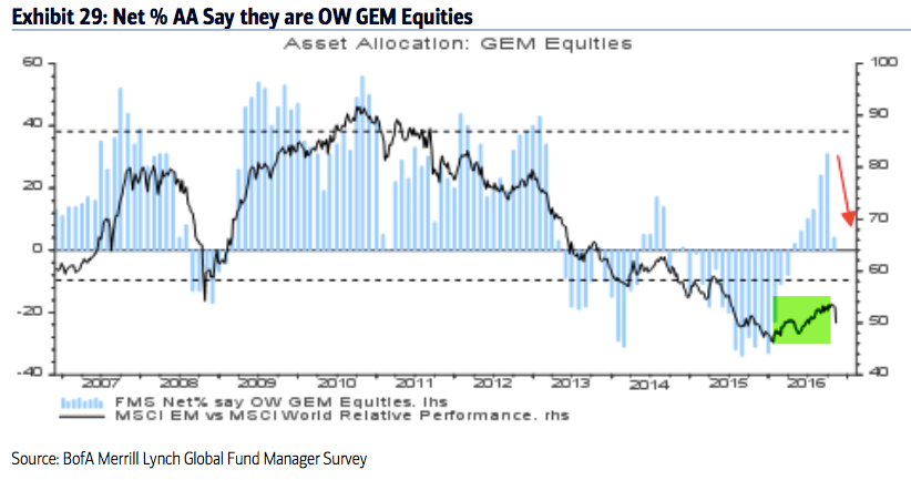 Among the various ways of measuring investor sentiment, the BAML survey of global fund managers is one of the better as the results reflect how managers are allocated in various asset classes. These managers oversee a combined $600b in assets.