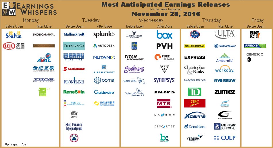 As you can see from the earnings calendar, we've pretty much run out of interesting companies to watch so the data becomes more important this time of year, until the earnings cycle starts again in January.