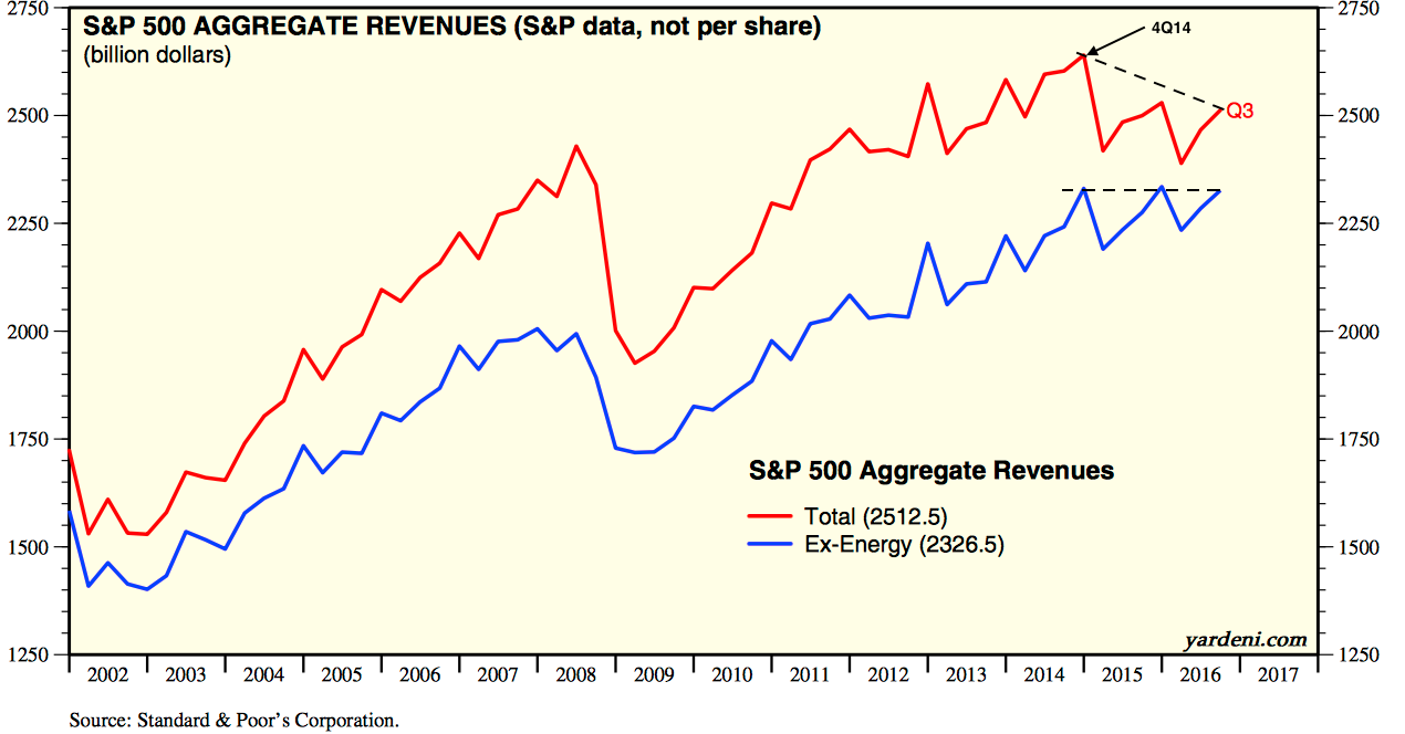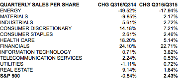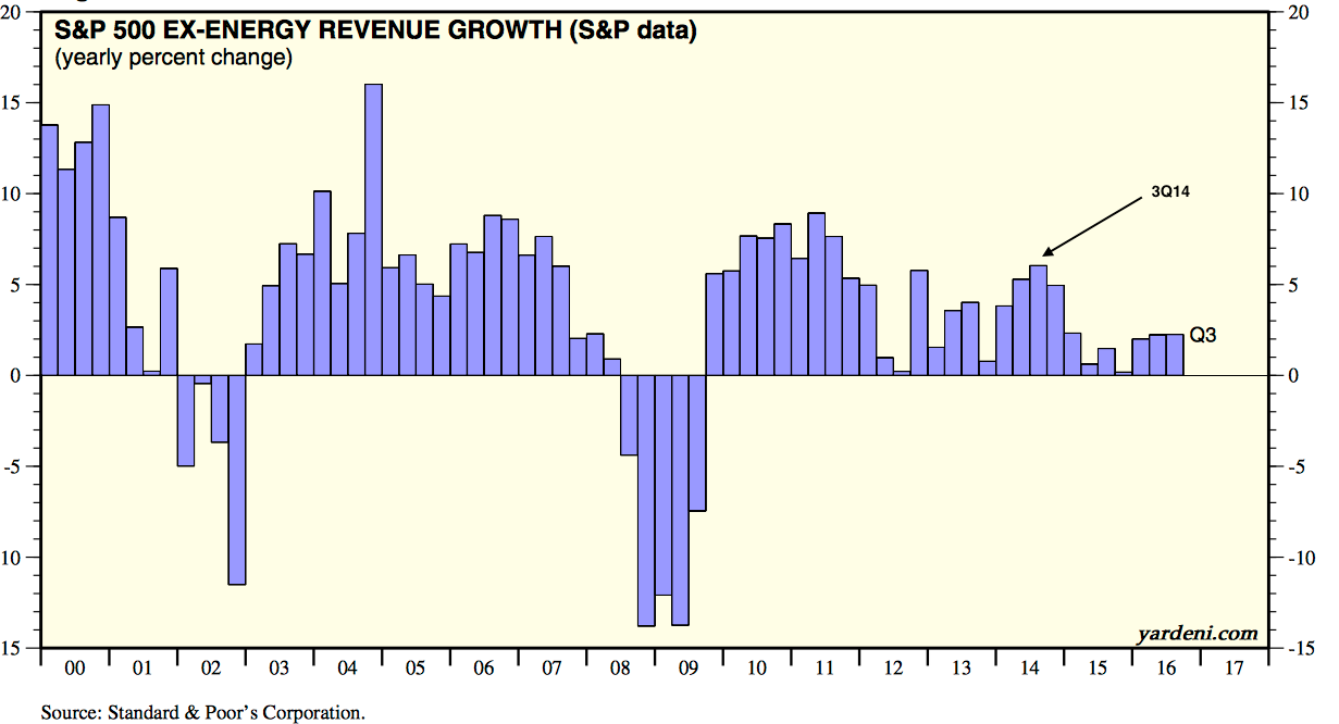 If overall S&P sales since 2014 were indicating widespread economic weakness, then we should have expected to see declining sales growth in many sectors, not just in energy and materials. We didn't.