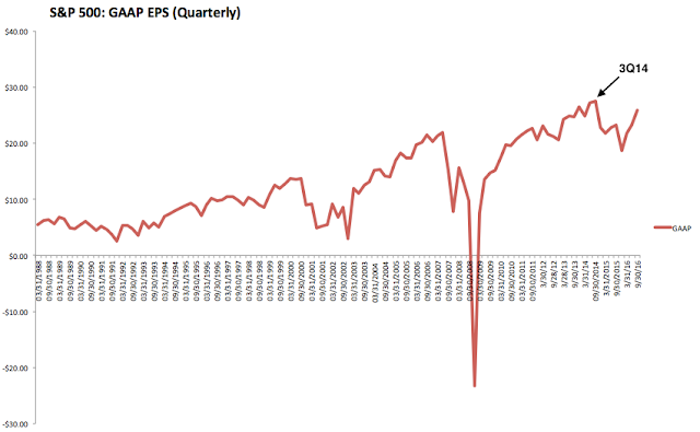 Weakness in energy was a very clear outlier since late 2014. The point of excluding energy has not been to imply that actual S&P results are better than they are. By excluding energy companies' financial results, we can see what the underlying trend for the rest of the S&P is.