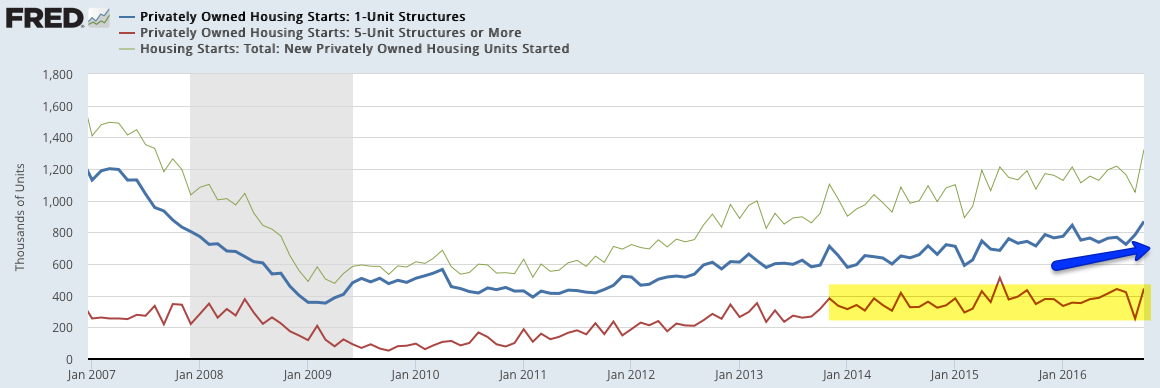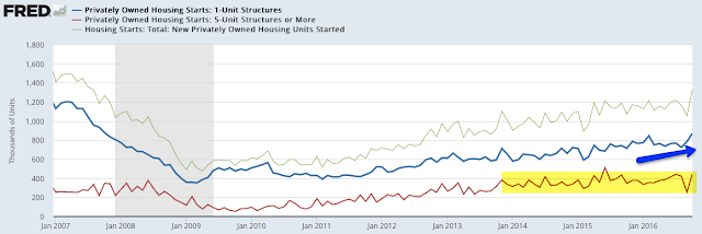 Second, overall starts made a new 9 year high in October. Prior to October, growth in starts had flattened over the previous 18 months.