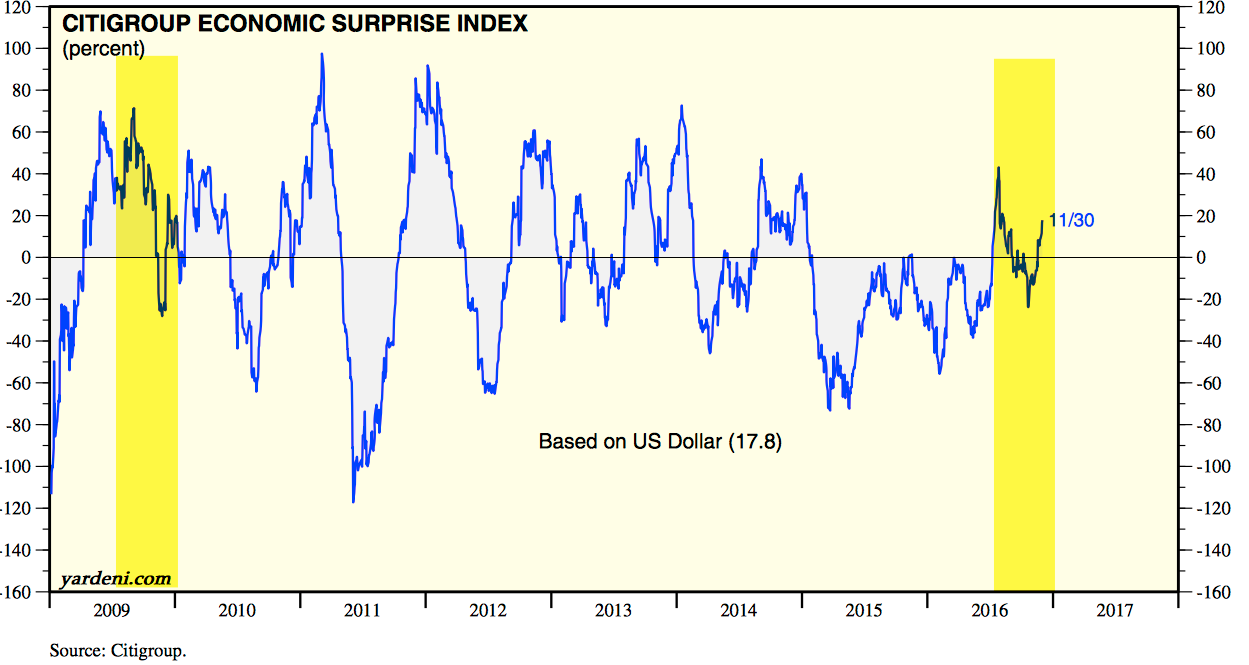There has been a tendency for macro data to underperform expectations in the first half of the year and beat expectations in the second half. For the first time since 2009, macro expectations were below zero to start the year and have been positive most of the second half of the year.