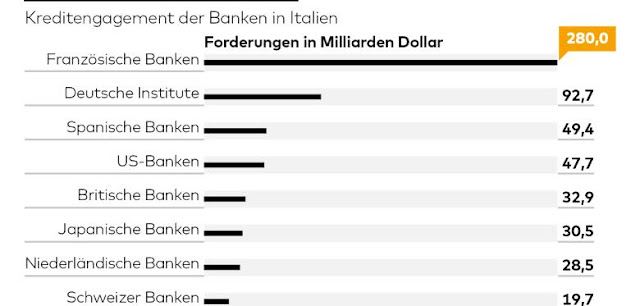 This can be seen in the figures for the Bank for International Payments (BIS), which monitors the financial turmoil worldwide. The data also show the extent to which the crisis in one or even several major banks in Italy could be passed on to other institutions and countries.