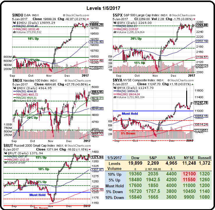Our indexes, meanwhile, are drifting along.  The S&P last made a new high on Dec 13th and, since then, it's been up and down around 2,200.  The Nasdaq made an all-time high yesterday but 1,713 stocks in the index declined while 1,182 advanced so a very narrow rally – to say the least!   The NYSE also had more declines than advances, with 25% more volume to the downside so be VERY CAREFUL about following this "rally" – it's more like a bubble that's stretching to the limit before it pops!