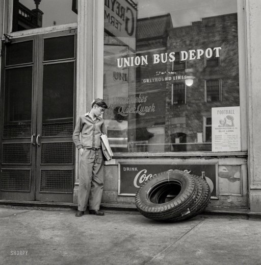 Esther Bubley Boy who rides to school daily on Greyhound bus, Washington Court House, Ohio 1943
