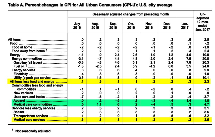 Speaking of inflation, we just got a stunningly high 0.6% rise in the CPI, which matches the 0.6% rise in the PPI yesterday and that is 100% higher than the expectations by the leading economorons they usually survey.  It was led, of course, by a 7.8% increase in gasoline in January after a 2.4% increase in December, which compounds well over 10% so thank you for shopping and thank you for taking the humble CEO of XOM and making him your Secretary of State.  Gasoline used to be $4 a gallon wholesale under Bush, it's down to $1.54 – we can do this to you for a long, long time so start saving now for your next tank of gas and thank you once again for your vote!
